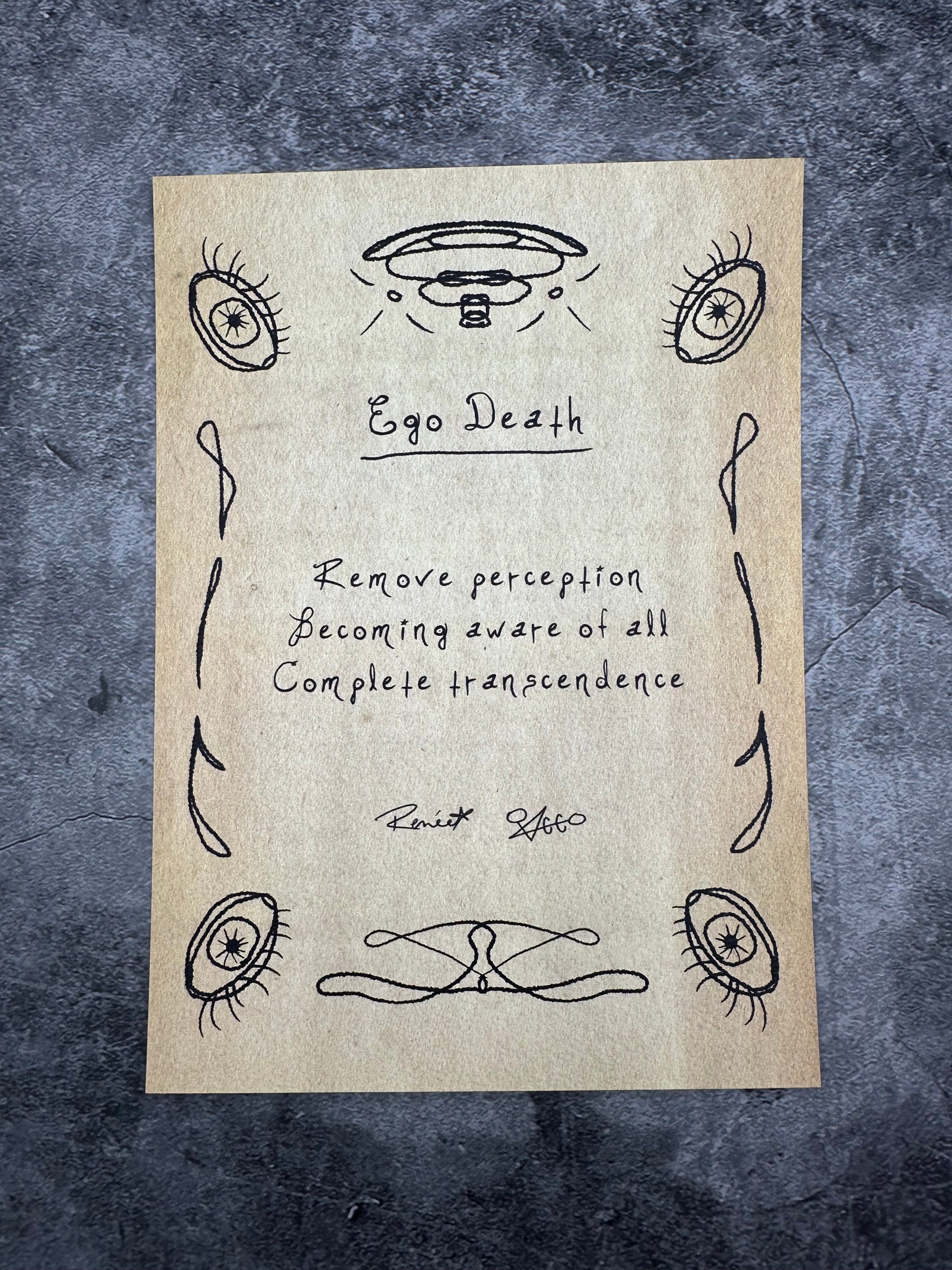 - 5x7” Unique story on recycled poster card. Embellished and written by me in my hand-crafted font.